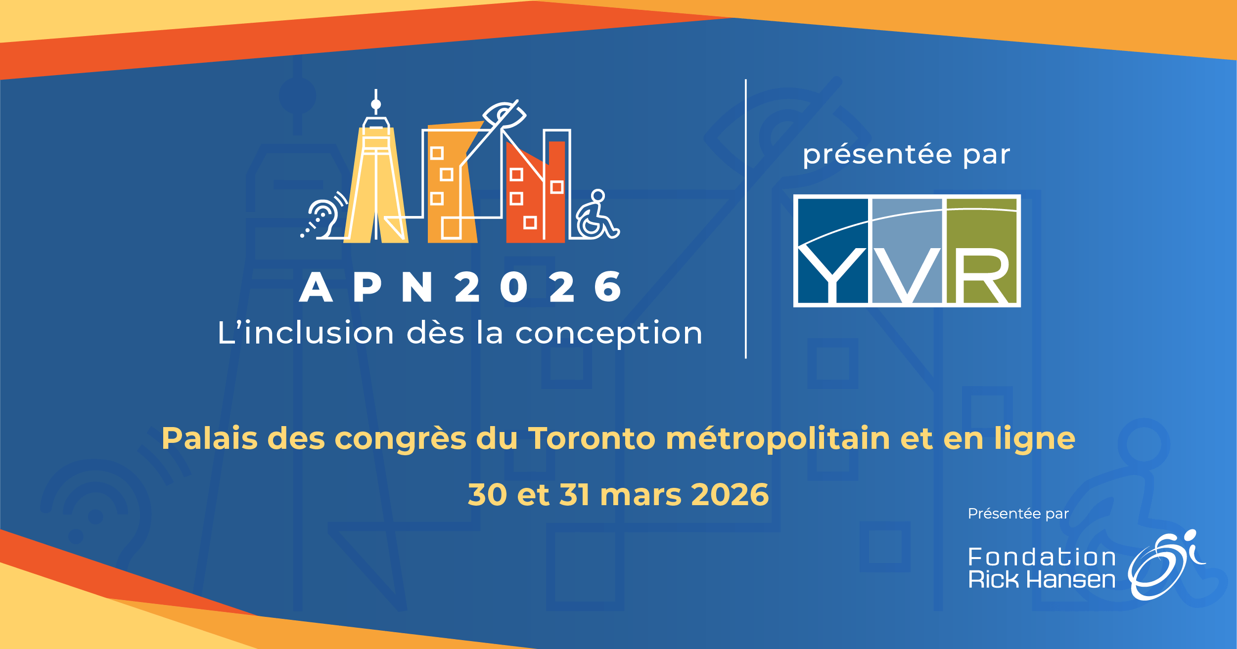 Organisée par la Fondation Rick Hansen, la conférence annuelle du Réseau des spécialistes en accessibilité (APN), la principale conférence sur l’accessibilité dans l’environnement bâti, est de retour en 2026! Joignez-vous à nous les 30 et 31 mars 2026, virtuellement ou en personne, au Palais des congrès du Toronto métropolitain, pour participer à deux journées inspirantes axées sur l’innovation, la collaboration et les retombées.